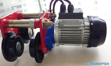 運行機構也稱電動小車、運行小車,跑車,由帶制動器的錐形轉子電動機通過運行減速器帶動小車的一對主動輪,使整個葫蘆沿著工字鋼軌道移動;5t(含5t)以下為一套驅動裝置,10t、16t采用兩套驅動裝置;當用于箱形梁或與H型鋼配套使用時,車輪踏面為直線形,用于工字鋼軌道時,車輪踏面為圓弧形。