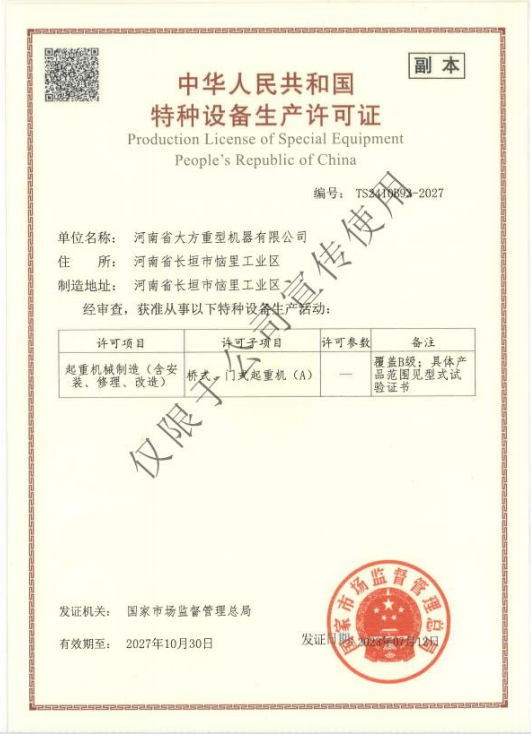 | 發(fā)證機構(gòu): | 國家市場監(jiān)督管理總局 | 發(fā)證時間 : | 2023-07-12 |