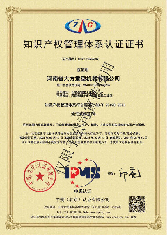 知識產(chǎn)權(quán)管理體系認證證書