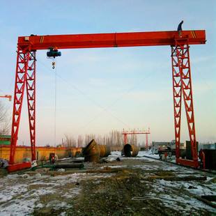 它的金屬結(jié)構(gòu)像門形框架,承載主梁下安裝兩條支腳,可以直接在地面的軌道上行走,主梁兩端可以具有外伸懸臂梁。