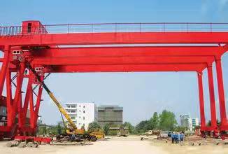 門式起重機(又稱龍門起重機)是橋架通過兩側支腿支撐在地面軌道上的橋架型起重機。在結構上由門架、大車運行機構、起重小車和電氣部分等組成。有的門式起重機只在一側有支腿,另一側支撐在廠房或棧橋上運行,稱作半門式起重機。門式起重機的門架上部橋架(含主梁和端梁)、支腿、下橫梁等部分構成。為了擴大起重機作業范圍,主梁可以向一側或兩側伸出支腿以外,形成懸臂。也可采用帶臂架的起重小車,通過臂架的俯仰和旋轉擴大起重機作業范圍