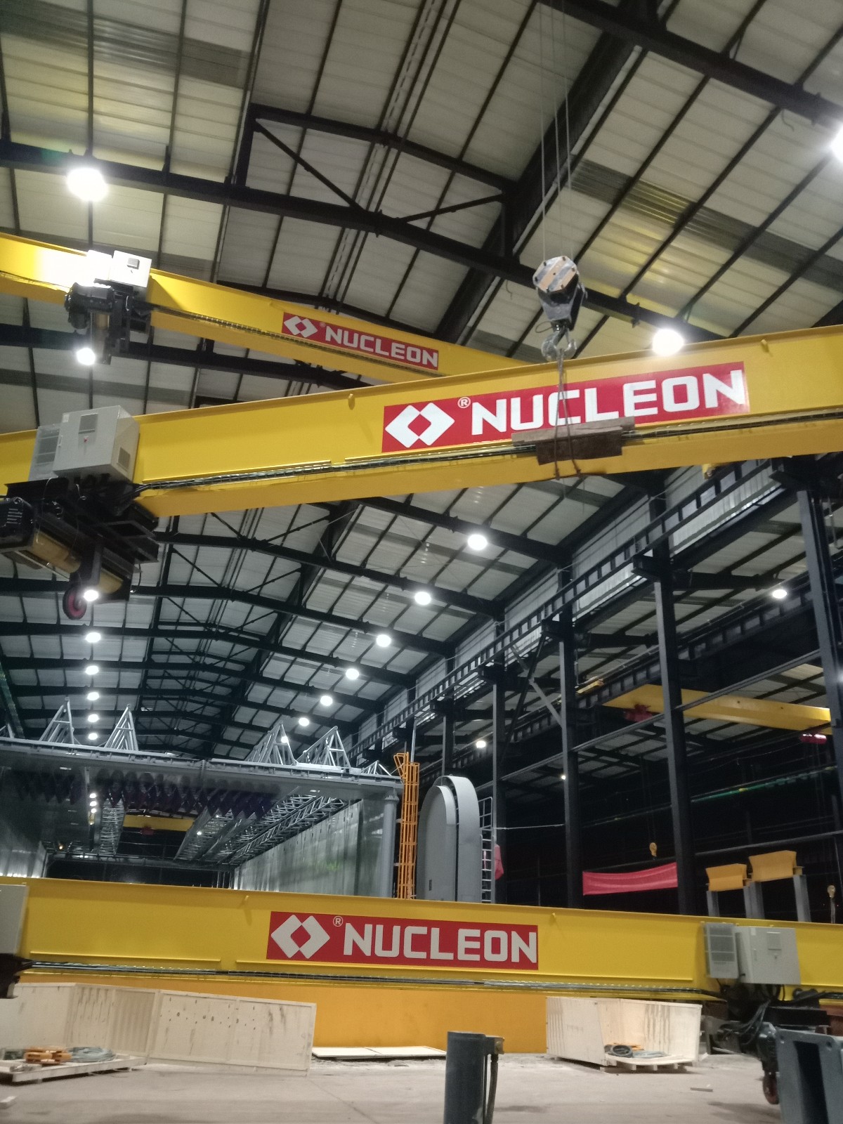 本公司主要生產產品有:(1)起重機類: 天車//行吊/行車單梁起重雙梁起重機、電動葫蘆雙梁起重機、   起重懸臂、壁栓式懸臂起重機、旋臂起重、LX懸掛起重機、LH葫蘆雙梁起重機、花架門式起重機、雙梁抓斗起重機、QD吊鉤橋式起重機、QD冶金鑄造起重機、QE雙小車吊鉤橋式起重機、MH單主梁葫蘆門式起重機、MG雙橋吊鉤門式起重機、L單主梁門式起重機、升降平臺、電磁吸盤、電動平車、導軌貨梯類非標起重機的制造、改造、安裝、維修、保養等。 二、配套件類:各類國產進口電動(手動)葫蘆、防爆電動葫蘆、冶金電動葫蘆.雙制動電動葫蘆、雙速電動葫蘆、環鏈電動葫蘆、微型電動葫蘆、手拉葫蘆、單軌小車、電磁(永磁)吸盤、電纜卷筒、電動小車、電控柜、卷揚機、空壓機、電動機、減速機、液壓制動器、聯軸器、變頻器、控制器、遙控器、保護器、電阻器、緩沖器、安全滑線、電線電纜、抓斗抓具、吊具索具夾具、吊帶、吊鉤、起重鏈條.車輪組、公司有專業維修人員為客戶;維修,安裝,調試,檢修保養等業務。