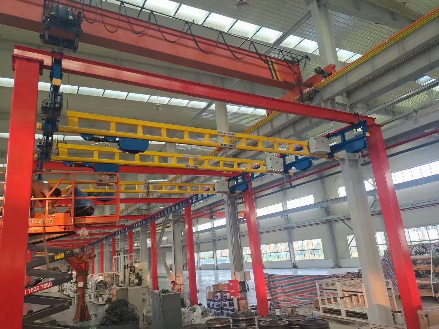 本公司主要生產產品有:(1)起重機類: 天車//行吊/行車單梁起重雙梁起重機、電動葫蘆雙梁起重機、   起重懸臂、壁栓式懸臂起重機、旋臂起重、LX懸掛起重機、LH葫蘆雙梁起重機、花架門式起重機、雙梁抓斗起重機、QD吊鉤橋式起重機、QD冶金鑄造起重機、QE雙小車吊鉤橋式起重機、MH單主梁葫蘆門式起重機、MG雙橋吊鉤門式起重機、L單主梁門式起重機、升降平臺類非標起重機的制造、改造、安裝、維修、保養等。 二、配套件類:各類國產進口電動(手動)葫蘆、防爆電動葫蘆、冶金電動葫蘆.雙制動電動葫蘆、雙速電動葫蘆、環鏈電動葫蘆、微型電動葫蘆、手拉葫蘆、單軌小車、電磁(永磁)吸盤、電纜卷筒、電動小車、電控柜、卷揚機、空壓機、電動機、減速機、液壓制動器、聯軸器、變頻器、控制器、遙控器、保護器、電阻器、緩沖器、安全滑線、電線電纜、抓斗抓具、吊具索具夾具、吊帶、吊鉤、起重鏈條.車輪組、公司有專業維修人員為客戶;維修,安裝,調試,檢修保養等業務。