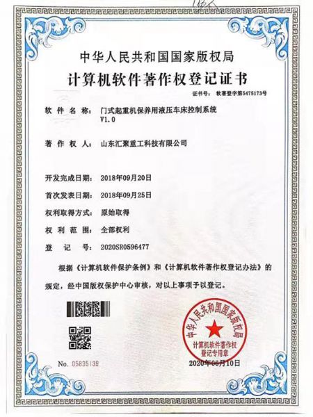 榮譽(yù)資質(zhì) 門(mén)式起重機(jī)保養(yǎng)用液壓車床控制系統(tǒng) V1.0