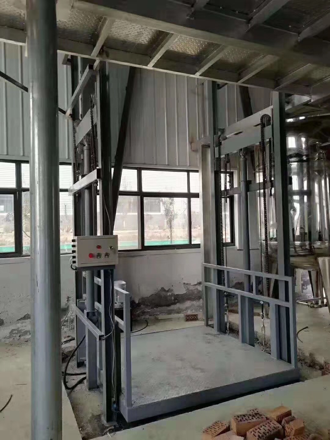 山西導(dǎo)軌式升升降貨梯、鄭州導(dǎo)軌式液壓升降機(jī)廠家、新鄉(xiāng)液壓升降貨梯價(jià)格、開封液壓升降貨梯3安裝是一種非剪叉式液壓升降機(jī)械設(shè)備.用于二三四層工業(yè)廠房,餐廳,設(shè)備運(yùn)行平穩(wěn),操作簡單可靠,貨物傳輸經(jīng)濟(jì)便捷量身打造高效率的送貨平臺(tái),產(chǎn)品液壓系統(tǒng)設(shè)置防墜、上下層門互動(dòng)連鎖,各樓層和升降臺(tái)工作臺(tái)面均可設(shè)置操作按鈕,實(shí)現(xiàn)多點(diǎn)控制。產(chǎn)品結(jié)構(gòu)堅(jiān)固,承載量大,升降平穩(wěn),安裝維護(hù)簡單方便,是經(jīng)濟(jì)實(shí)用的低樓層間替代電梯的理想貨物輸送設(shè)備。根據(jù)升降臺(tái)的安裝環(huán)境和使用要求,選擇不同的可選配置,可取得更好的使用效果大承載10噸,實(shí)現(xiàn)多點(diǎn)控制,上下樓層互動(dòng)聯(lián)鎖,達(dá)到安全使用;提升高度高,采用旁置油缸、或雙測式油缸,運(yùn)行平穩(wěn)、無噪聲、維修方便、使用壽命較長;停電手動(dòng)下降、緊急停止按鈕,方便、快捷、實(shí)用; 地坑深度一般為15cm-30cm,頂層高度不受限制,可根據(jù)現(xiàn)場環(huán)境定做用;層門可貫通,廠房內(nèi)外可相互戳開,方便、節(jié)省空間;特別適合2-3層鋼結(jié)構(gòu)廠房,內(nèi)外部均可使用;泵站采用進(jìn)口泵站,如果速度要求過高,采用進(jìn)口定制泵站,達(dá)到理想的送貨要求,油缸和密封件采用進(jìn)口零部件,解決客戶油壓不穩(wěn)定,零部件漏油問題,電器零部件可選,液壓電梯在具備傳統(tǒng)曳引式電梯的安全裝置的同時(shí), 還設(shè)有:溢流閥:可防止上行運(yùn)動(dòng)時(shí)系統(tǒng)壓力過高,應(yīng)急手動(dòng)閥:電源發(fā)生故障時(shí), 可使轎廂應(yīng)急下降到最近的層樓位置開門, 手動(dòng)泵:當(dāng)系統(tǒng)發(fā)生故障時(shí), 管路破裂閥:當(dāng)液壓系統(tǒng)管路破裂轎廂失速下降時(shí), 可自動(dòng)切斷油路停止下降。油箱油溫保護(hù):當(dāng)油箱中油溫超過標(biāo)準(zhǔn)設(shè)定值時(shí), 油溫保護(hù)裝置發(fā)生信號(hào), 暫停電梯使用, 當(dāng)油溫下降后方可啟動(dòng)電梯。只需要挖十幾厘米的地坑,保證貨物進(jìn)出的方便,方便設(shè)備的安裝和使用場合。液壓油缸、特種重型鏈條、鋼絲繩、多從保護(hù),保證設(shè)備運(yùn)行和使用的安全。可以無需地坑,直接采用斜坡處理,極大方便設(shè)備的安裝使用空間和場合。