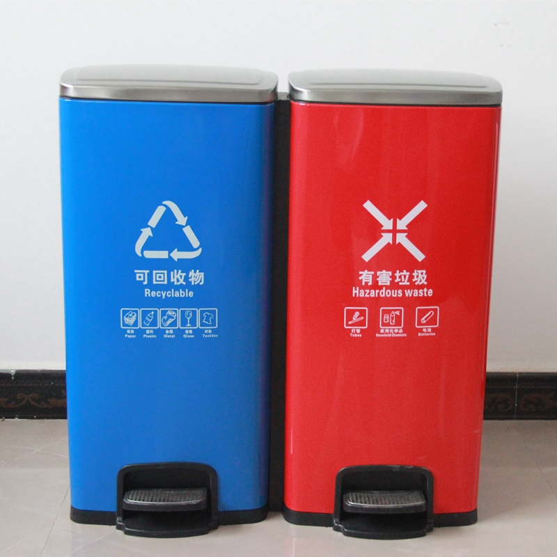 河南天祥 鍍鋅垃圾箱室內腳踏兩分類垃圾桶 廠家直銷 支持定制
