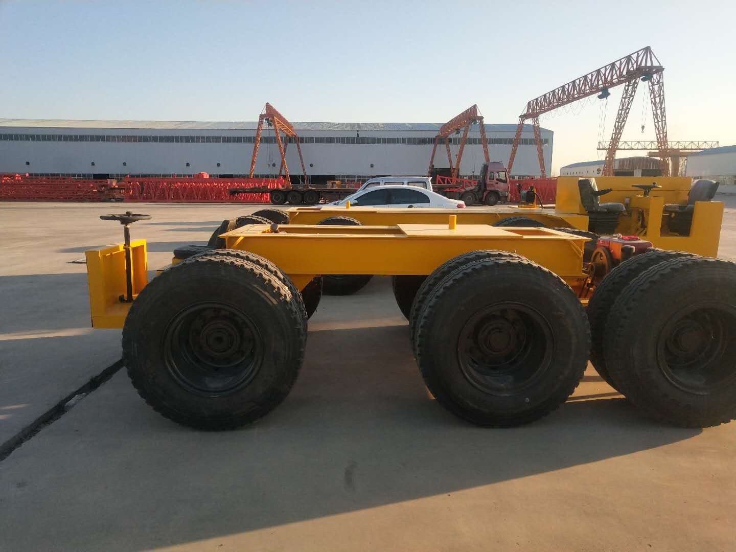 經營產品有:輪胎式運梁車、架橋機,門式起重機,公司生產加工設備先進,檢測設備精良,擁有數控車床、數控鉆床、加工中心、數控滾齒機、插齒機、精密鏜床、萬能銑床、各種磨床、龍門刨床、折彎機、大型車床、刨床、高中頻淬火、井式、箱式淬火爐、回火爐、自動焊機、X射線探傷機等全部工藝流程。