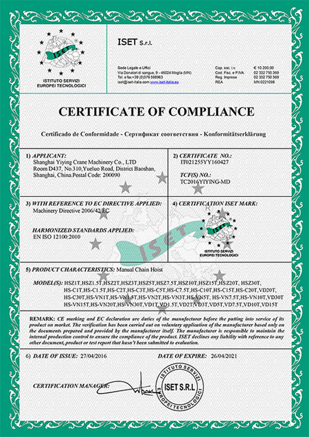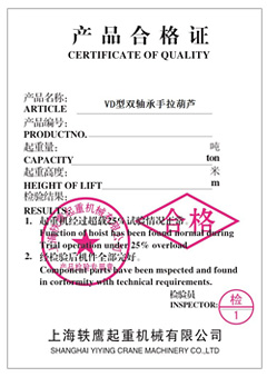 VD型號(hào)雙軸承手拉葫蘆認(rèn)證