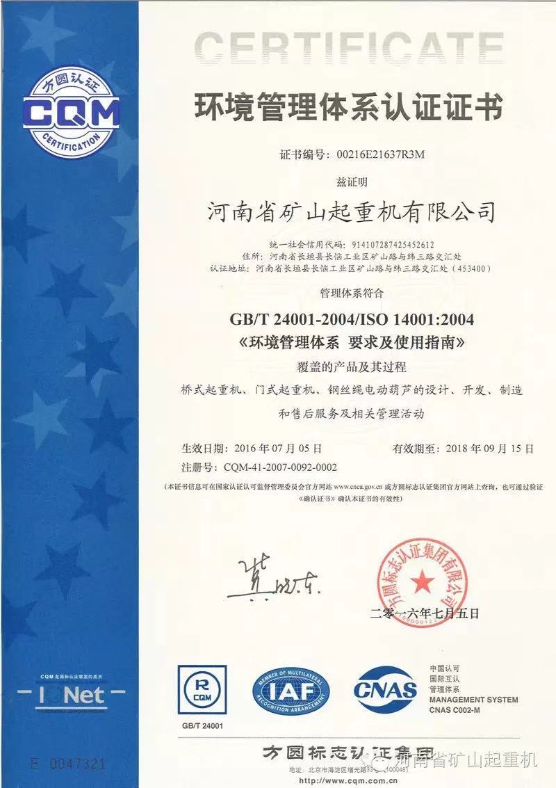 » 環境管理體系認證證書