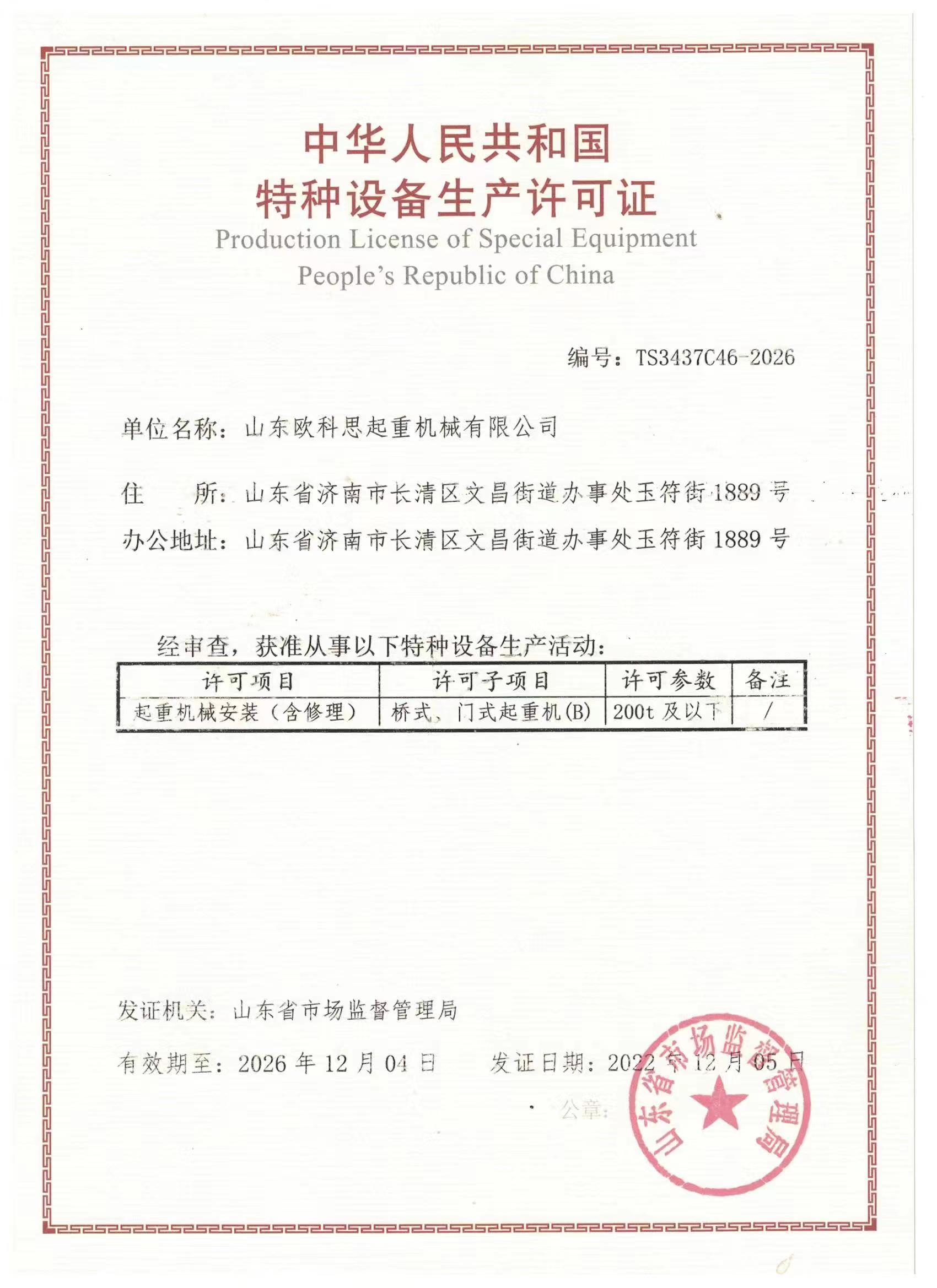 山東歐科思起重機械有限公司