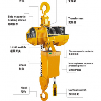 二、外殼:外殼輕盈而堅固,散熱率高,全密封性設計適合在作業條件較差的環境中使用逆相保護設備:為特別電器設備,當電源接線錯誤時,控制電路無法作業極限開關:重物吊上吊下都有極限開關設備,使電機主動中止,以避免鏈條超出,確保安全