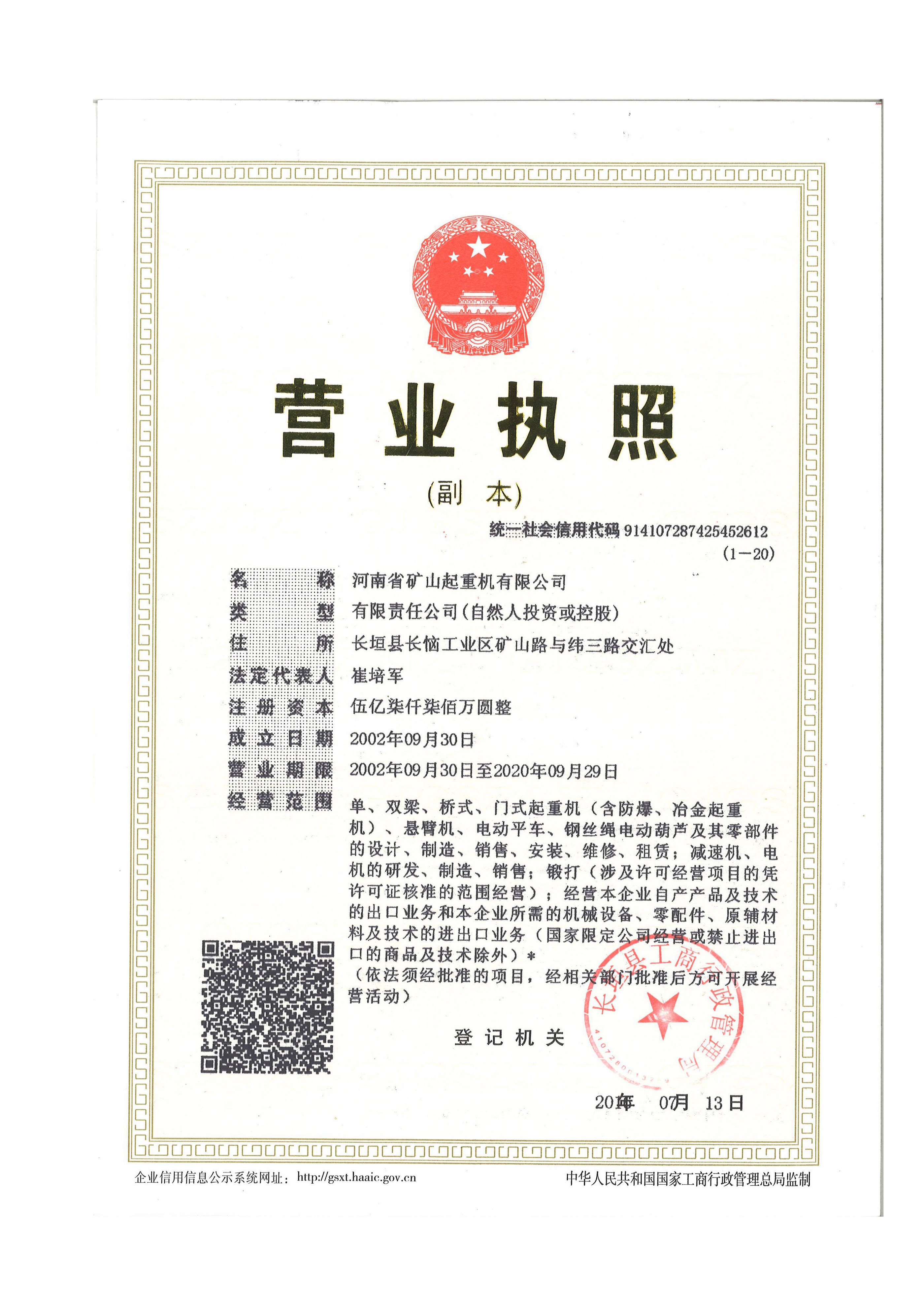 發證機構:   長垣縣工商行政管理局 發證時間 :   2002-09-30
