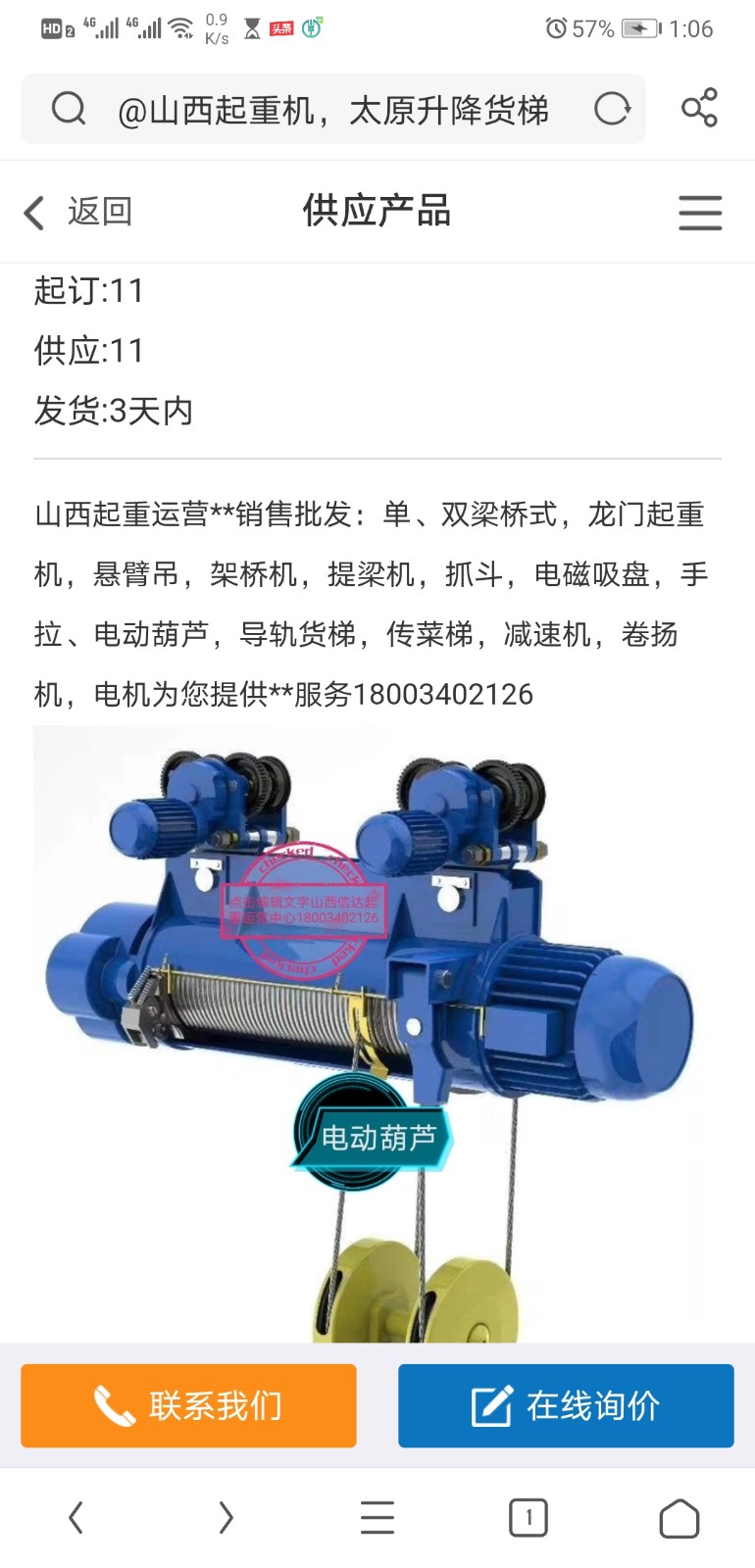 聯系我時,請告知來自全球起重機械網,將會給你95折優惠,謝謝!