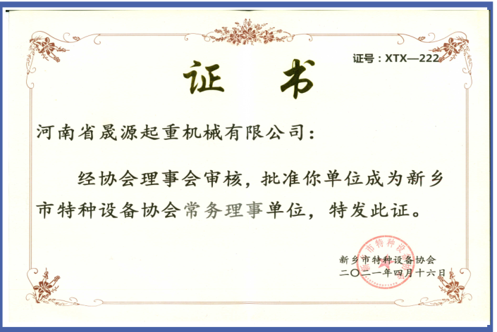河南省晟源起重機械有限公司證書
