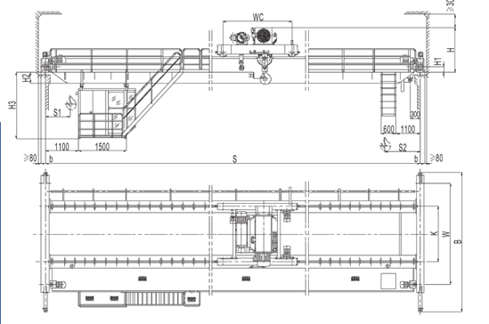 (1)、LH型電動葫蘆橋式起重機具有外形尺寸緊湊、建筑凈空高度低、自重輕、輪壓小等優點。
