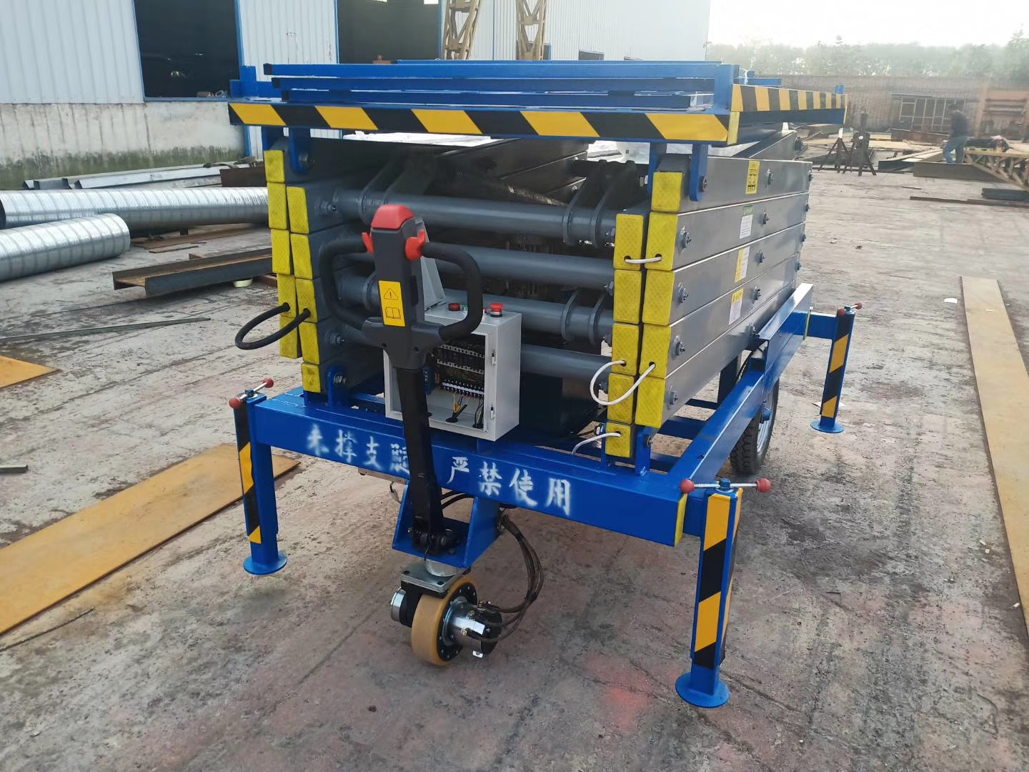 自行走式升降平臺具有自動化程度高、操作簡單、作業效率高等特點。它具有自動行走功能,能夠在各種工作狀態下,僅僅依靠自身動力和裝置,單人即可完成升降機前進、后退、轉向、快、慢速行走和升降等操作,省工、省力。升降機移動時,不需要收起,在升起狀態下即可實現移動功能,作業效率大大提高。