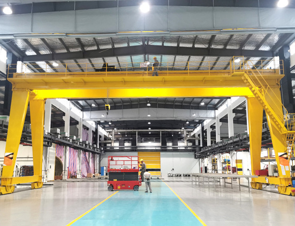 龍門吊起重機是一種橋式起重機的變形,它的金屬結構像門形框架,承載主梁下安裝兩條支腳,可以直接在地面的軌道上行走,主梁兩端可以具有外伸懸臂梁。這種起重機主要用于室外的貨場、料場貨、散貨的裝卸作業。它具有場地利用率高、作業范圍大、適應面廣、通用性強等特點,在港口貨場得到廣泛使用。龍門吊起重機的操作需要專業人員來進行,并且對使用環境有一定的要求。在操作前,需要進行全面的檢查,包括外觀、電氣系統、機械部件、軌道和安全裝置等部分。在操作中,需要嚴格遵守安全操作規程,包括開車前檢查、開車、工作完畢后的停車等步驟。同時,也需要進行定期的維護和保養,確保設備的正常運轉。