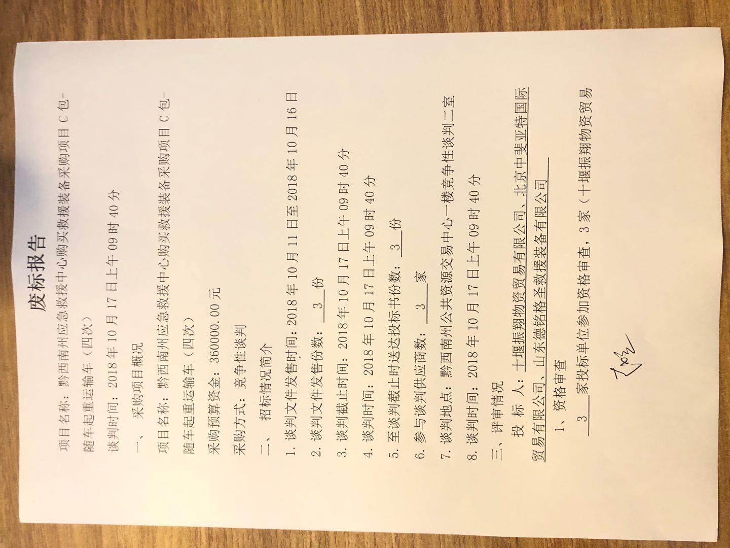 七、開標(談判)日期:2018-10-17 *(如項目未開始招投標而直接廢標,定標日期為采購單位確定廢標日期)