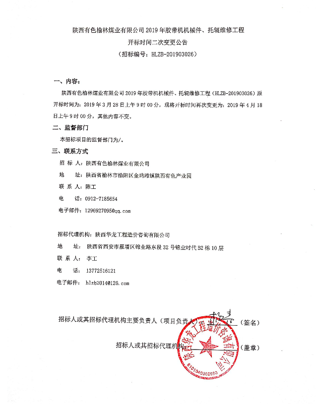陜西有色榆林煤業(yè)有限公司起重機(jī)及電動葫蘆定期維護(hù)保養(yǎng)工程開標(biāo)時間二次變更公告