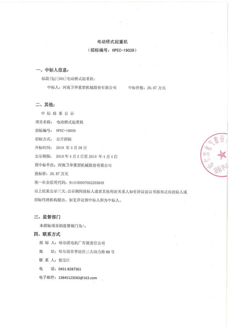 移動(dòng)版:電動(dòng)橋式起重機(jī)中標(biāo)公告
