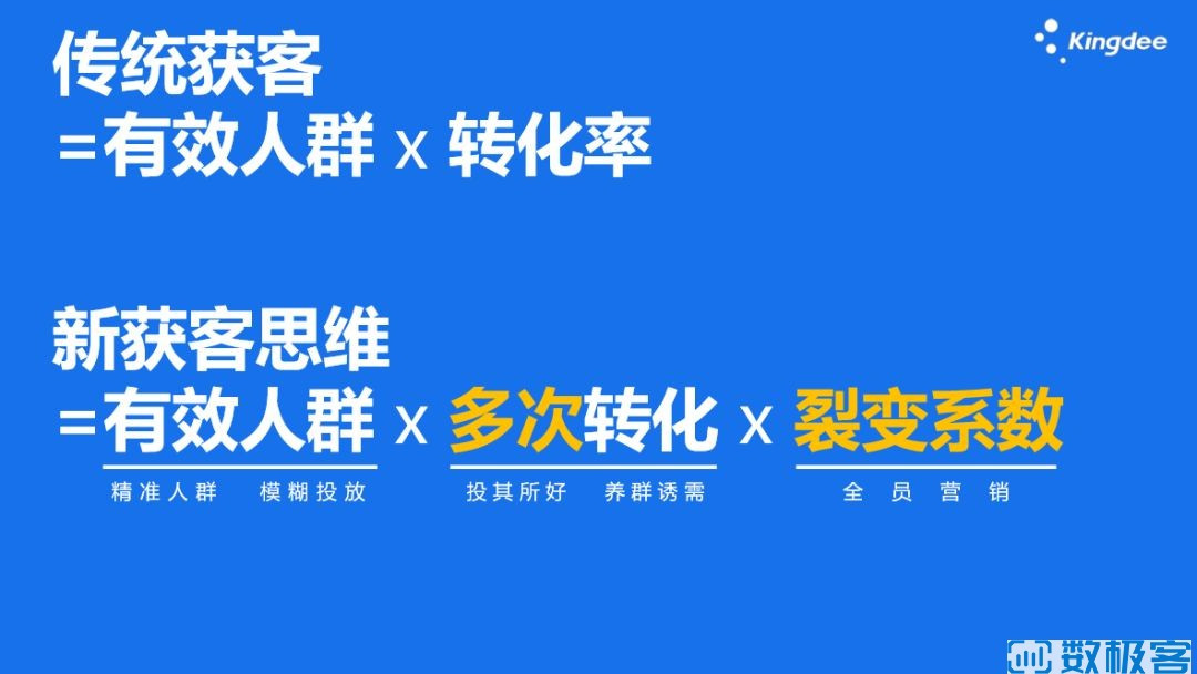這個公式有三個因素:有效人群、多次轉化、裂變系數。