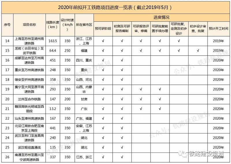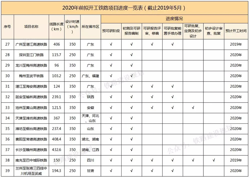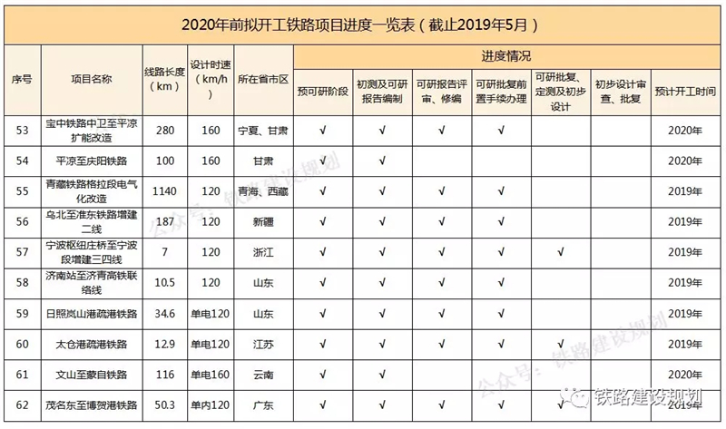 2020年前擬開工鐵路項(xiàng)目進(jìn)度一覽表▼