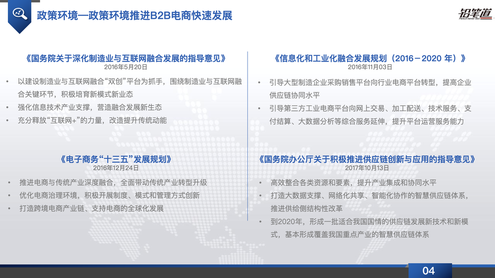“政策推動下,國內各大產業信息化持續升級,供應鏈體系日漸完備,為B2B電商發展打下堅實基礎。
