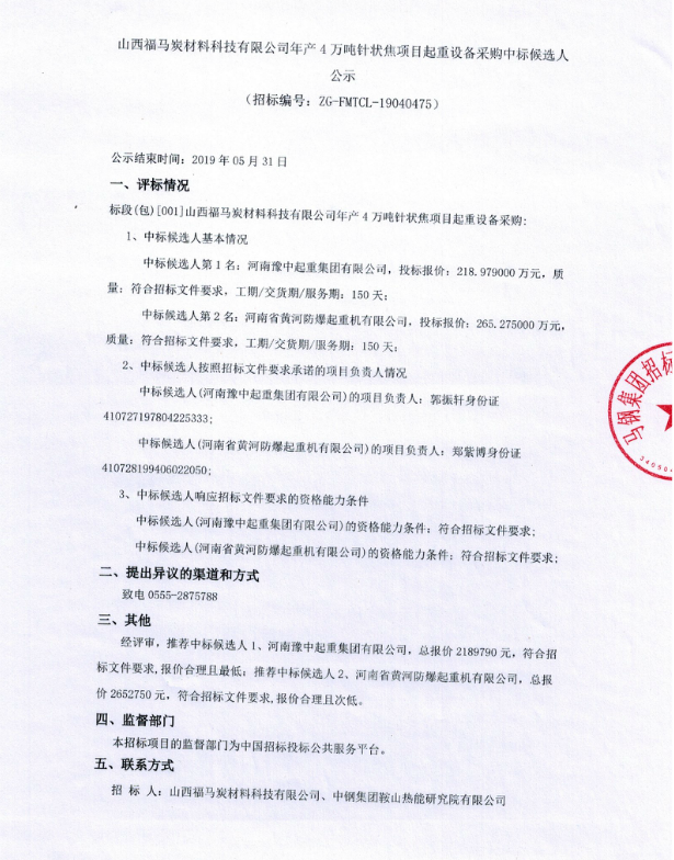 移動(dòng)版:山西福馬炭材料科技有限公司年產(chǎn)4萬噸針狀焦項(xiàng)目起重設(shè)備采購中標(biāo)候選人公示