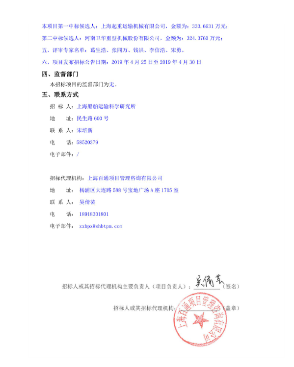 移動版:航運技術與安全科研設施及基地建設項目行車起重設備系統中標候選人公示