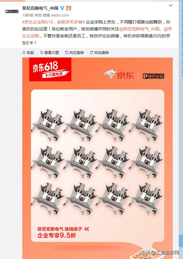 電氣領(lǐng)域的巨頭施耐德,去年與京東工業(yè)品達(dá)成戰(zhàn)略合作,在商品、售前售后服務(wù)、渠道融合及供應(yīng)鏈方面展開深入合作。簽約至今,施耐德B2B業(yè)務(wù)增長(zhǎng)超過300%。同年,電氣領(lǐng)域的另一個(gè)巨頭,菲尼克斯電氣在京東建立自營品牌旗艦店,發(fā)布SKU3000余個(gè),涉及接線端子、連接器、繼電器等多個(gè)品類,覆蓋電氣連接、電子接口和工業(yè)自動(dòng)化等多個(gè)領(lǐng)域。