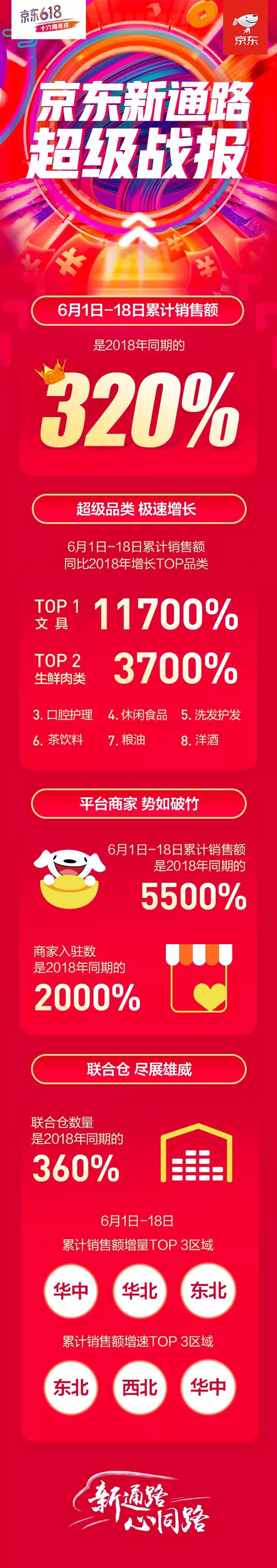 戰報顯示,6月1日至18日,京東新通路累計銷售額達到去年同期的320%。這意味著,京東新通路連續第四年保持高增長態勢,并為品牌、品類的極速增長不斷蓄積能量。
