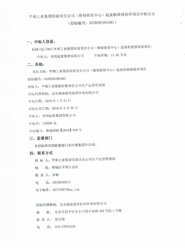 移動(dòng)版:平朔工業(yè)集團(tuán)有限責(zé)任公司(維修租賃中心)起重機(jī)維修保養(yǎng)項(xiàng)目中標(biāo)公示