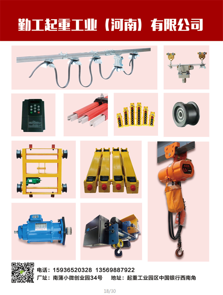 勤工起重主營(yíng)C型鋼,環(huán)鏈葫蘆,變頻器,三合一電機(jī),臺(tái)車,滑線等起重配件,產(chǎn)品每年不斷出口,走出國(guó)門,受到國(guó)外客戶的好評(píng)并保持長(zhǎng)期合作。采購(gòu)熱線:15936520328孫經(jīng)理