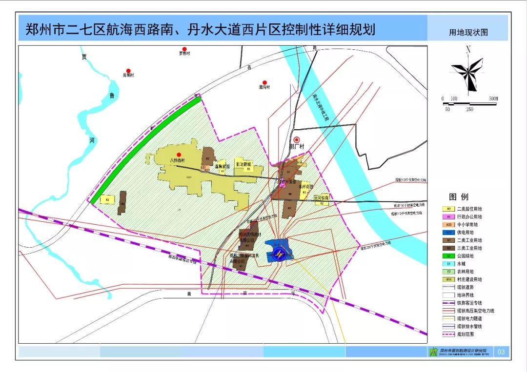 規(guī)劃范圍位于鄭州市中心城區(qū)西南部,位于航海西路南、丹水大道西,為丹水大道、長江路、南四環(huán)、尖崗路、安亭路、航海西路、櫻桃路、晨雨路、金沙江路、晨霞路圍合的區(qū)域,規(guī)劃范圍用地面積為276.70公頃(4150.5畝)。 用地性質(zhì)為:(R2)二類居住用地,(A2)文化設(shè)施用地,(A33)中小學(xué)用地,(A4)體育用地,(A6)社會(huì)福利設(shè)施用地,(B1)商業(yè)用地,(S1)城市道路用地,(S41)公共交通場站用地,(S42)社會(huì)停車場用地,(U12)供電用地,(U31)消防用地,(G1)公園綠地,(G2)防護(hù)綠地