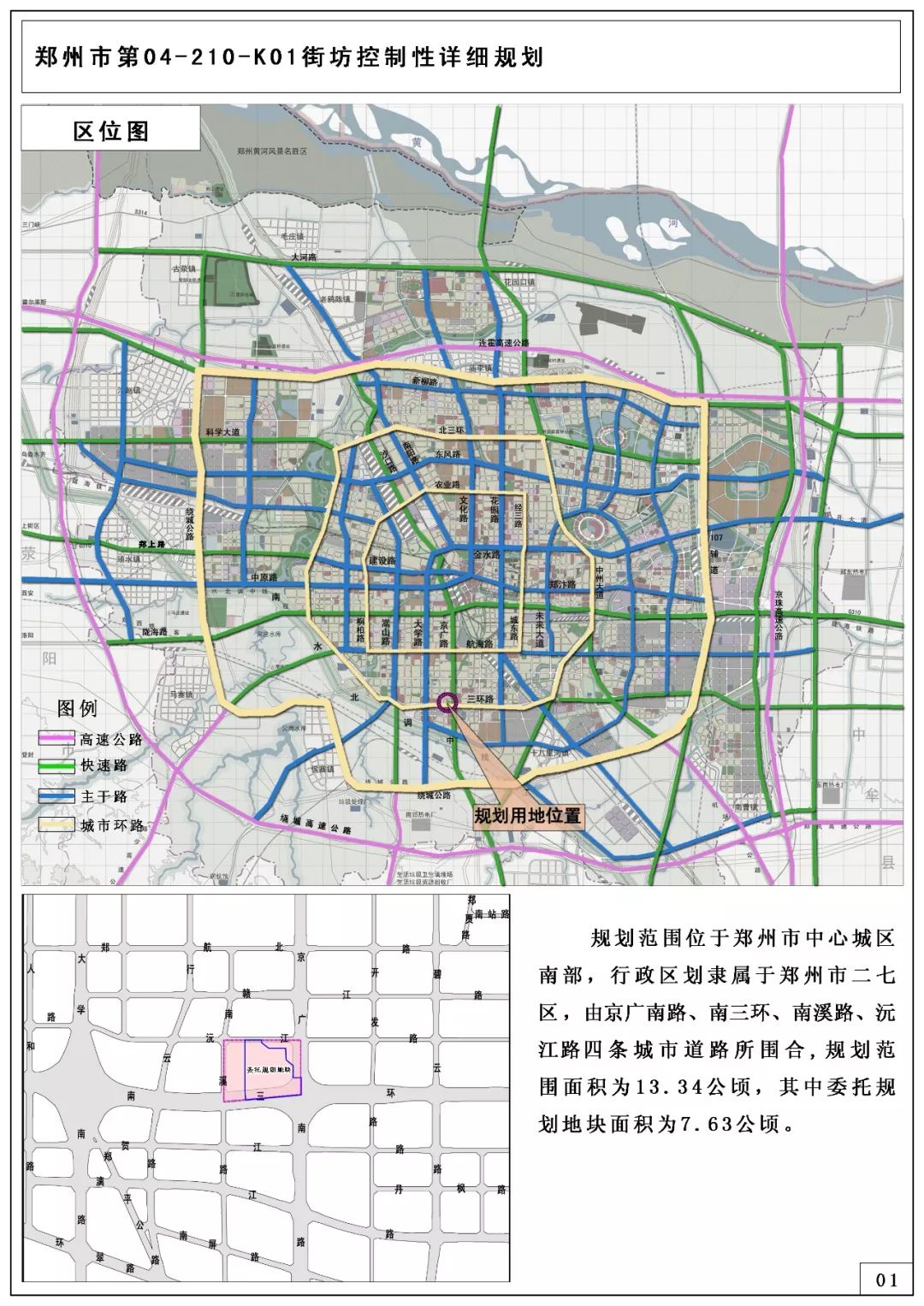 規(guī)劃范圍位于鄭州市中心城區(qū)南部,行政區(qū)劃隸屬于二七區(qū),由京廣南路、南三環(huán)、南溪路、沅江路四條城市道路所圍合,規(guī)劃范圍面積為13.34公頃(200.1畝),其中委托規(guī)劃地塊面積為7.63公頃(114.45畝)。