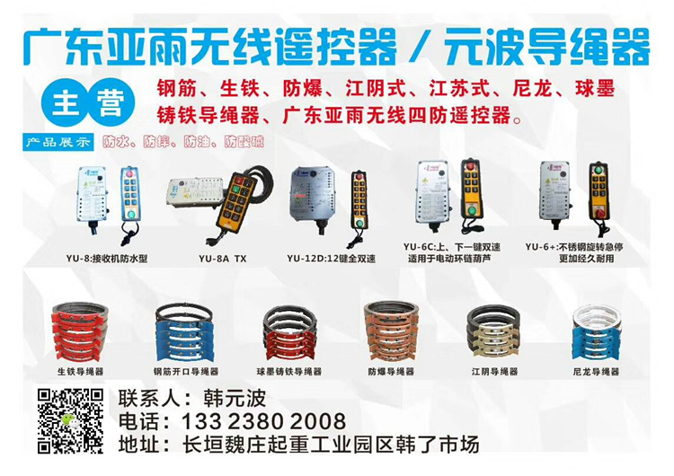 恭喜廣東亞雨遙控器/元波導(dǎo)繩器第3年簽約《起重匯·采購(gòu)指南》