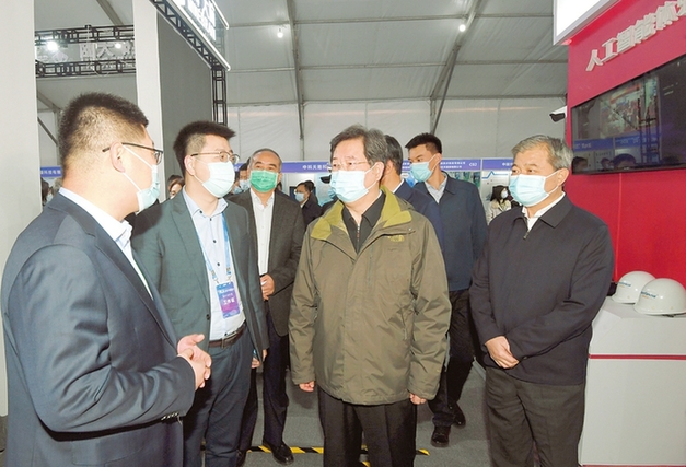 十月三十一日,二○二○中國(太原)人工智能大會開幕式前,省委書記樓陽生等省領導與參會嘉賓一同巡館,參觀人工智能主題展覽。記者李聯軍攝