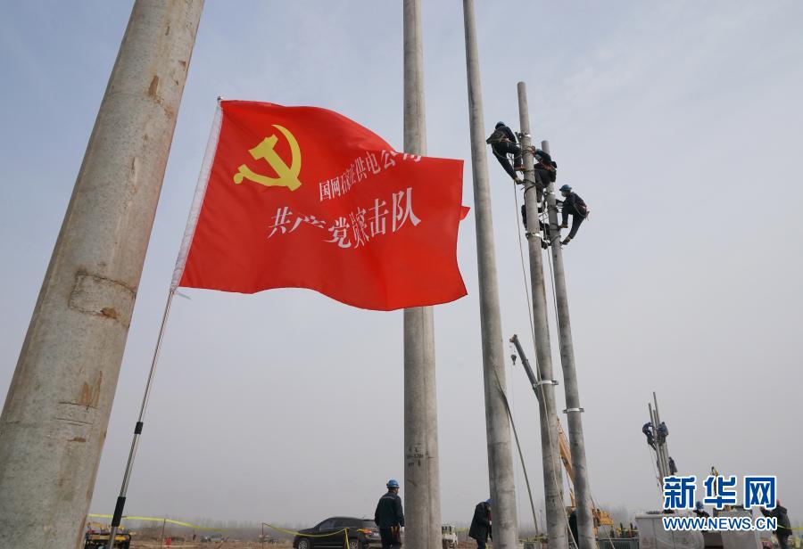 1月14日,國(guó)網(wǎng)石家莊供電公司員工在石家莊市集中隔離點(diǎn)建設(shè)工地安裝供電設(shè)備。新華社記者 楊世堯 攝