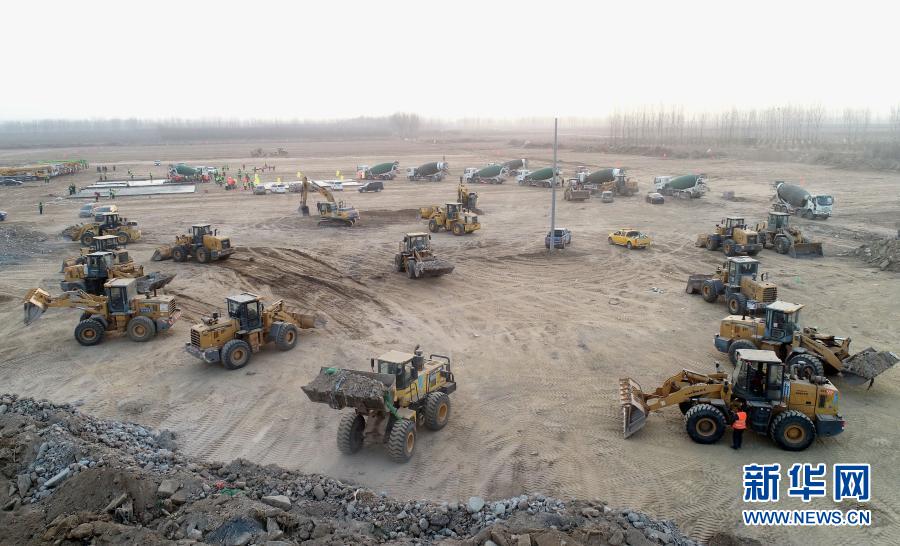這是1月14日拍攝的石家莊市集中隔離點(diǎn)建設(shè)施工現(xiàn)場(chǎng)(無(wú)人機(jī)照片)。新華社記者 楊世堯 攝