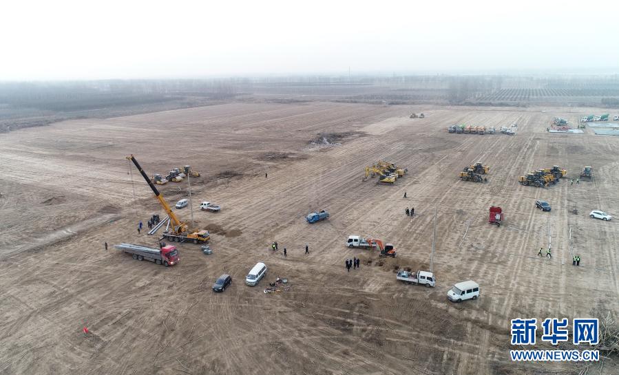 1月14日,工人在石家莊市集中隔離點(diǎn)建設(shè)工地施工(無(wú)人機(jī)照片)。新華社記者 楊世堯 攝