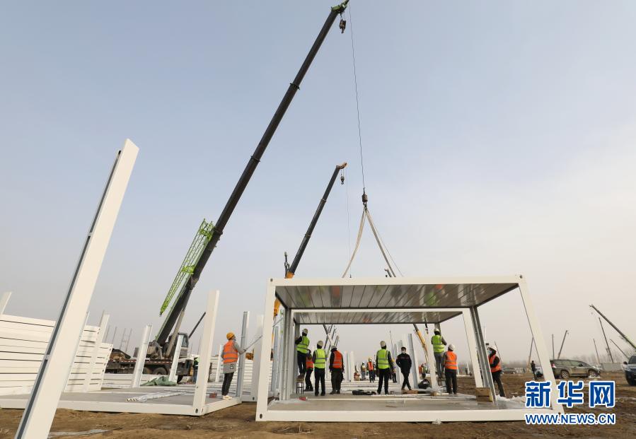1月14日,工人在石家莊市集中隔離點(diǎn)建設(shè)工地組裝集成房屋。新華社發(fā)(梁子棟 攝)