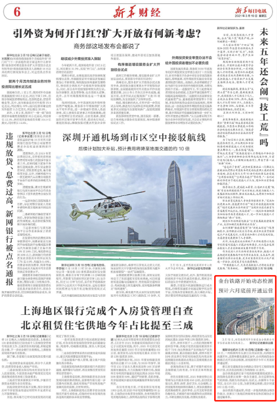 據新華社杭州3月18日電(記者魏一駿)3月18日,一列檢測列車從浙江臺州站出發,向西駛向永康方向,這意味著連通浙江金華、臺州兩地的金臺鐵路正式開啟動態檢測,該線路預計今年6月底前開通運營。