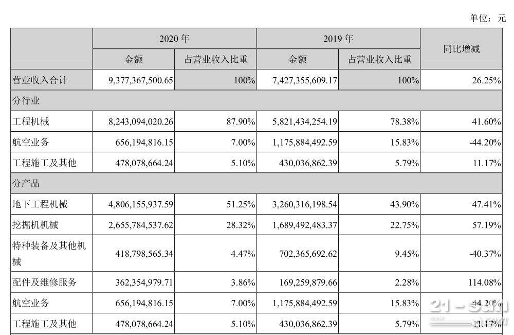 最新財報顯示,山河智能2020年營收93.77億元,同比增長26.25%;實現歸屬于上市公司股東凈利潤5.65億元,同比增長12.35%。