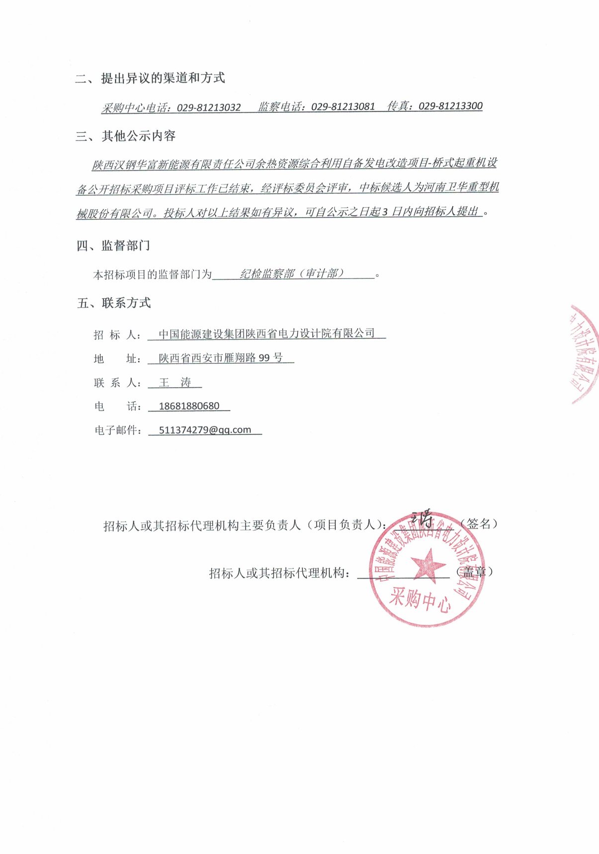 陜西漢鋼華富新能源有限責(zé)任公司余熱資源綜合利用自備發(fā)電改造項(xiàng)目-橋式起重機(jī)設(shè)備公開招標(biāo)采購(gòu)項(xiàng)目中標(biāo)候選人公示