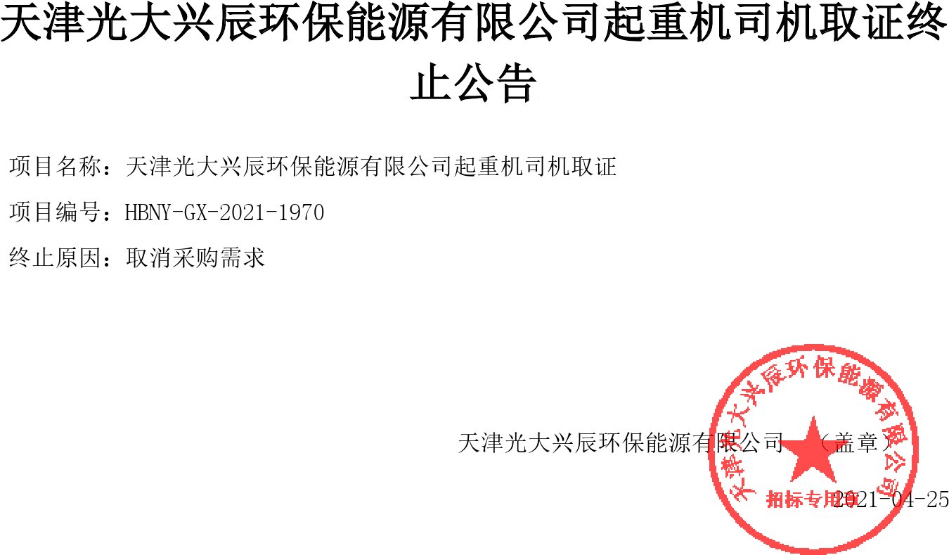 移動版:天津:天津光大興辰環(huán)保能源有限公司起重機(jī)司機(jī)取證終止公告