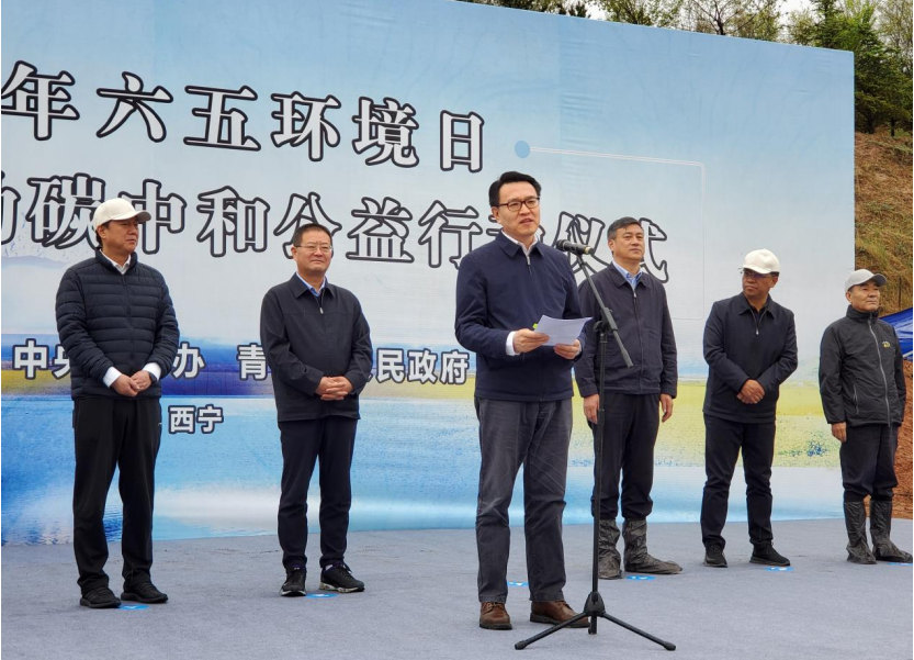 5月15日,生態環境部、中央文明辦、青海省人民政府在青海省西寧市納家山綠化基地舉行2021年六五環境日國家主場活動碳中和公益行動啟動儀式。生態環境部副部長趙英民發表致辭,青海副省長劉濤發出倡議并宣布碳中和公益行動啟動,共同為2021年六五環境日國家主場活動碳中和紀念林揭碑。參會人員還開展了碳中和紀念林植樹造林活動。