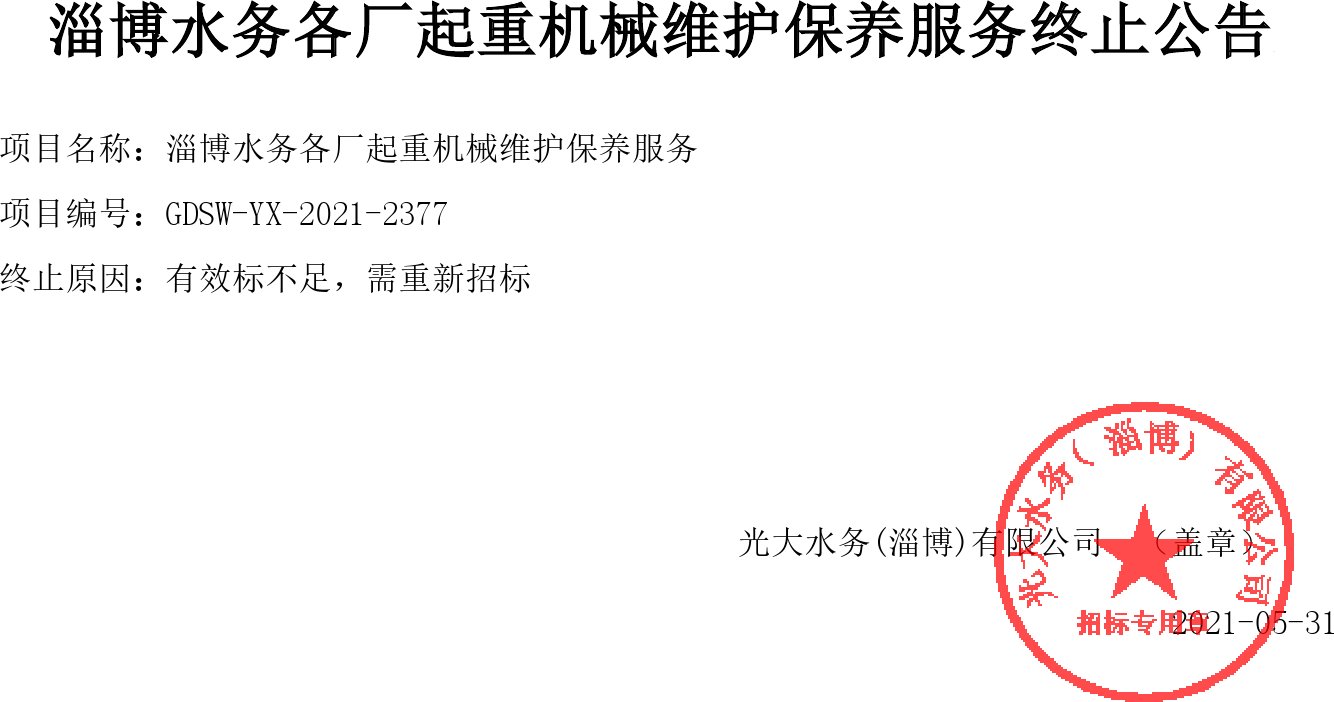 移動(dòng)版:山東:淄博水務(wù)各廠起重機(jī)械維護(hù)保養(yǎng)服務(wù)終止公告