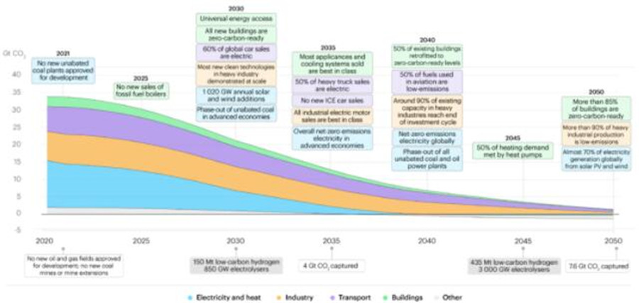 IEA對光伏發電也寄予厚望,在發布的碳減排目標上,表示在2050年,將要實現85%的建筑實現零排放;超過90%的重工業生產實現低碳;至少70的電力是來自于光伏和風電。