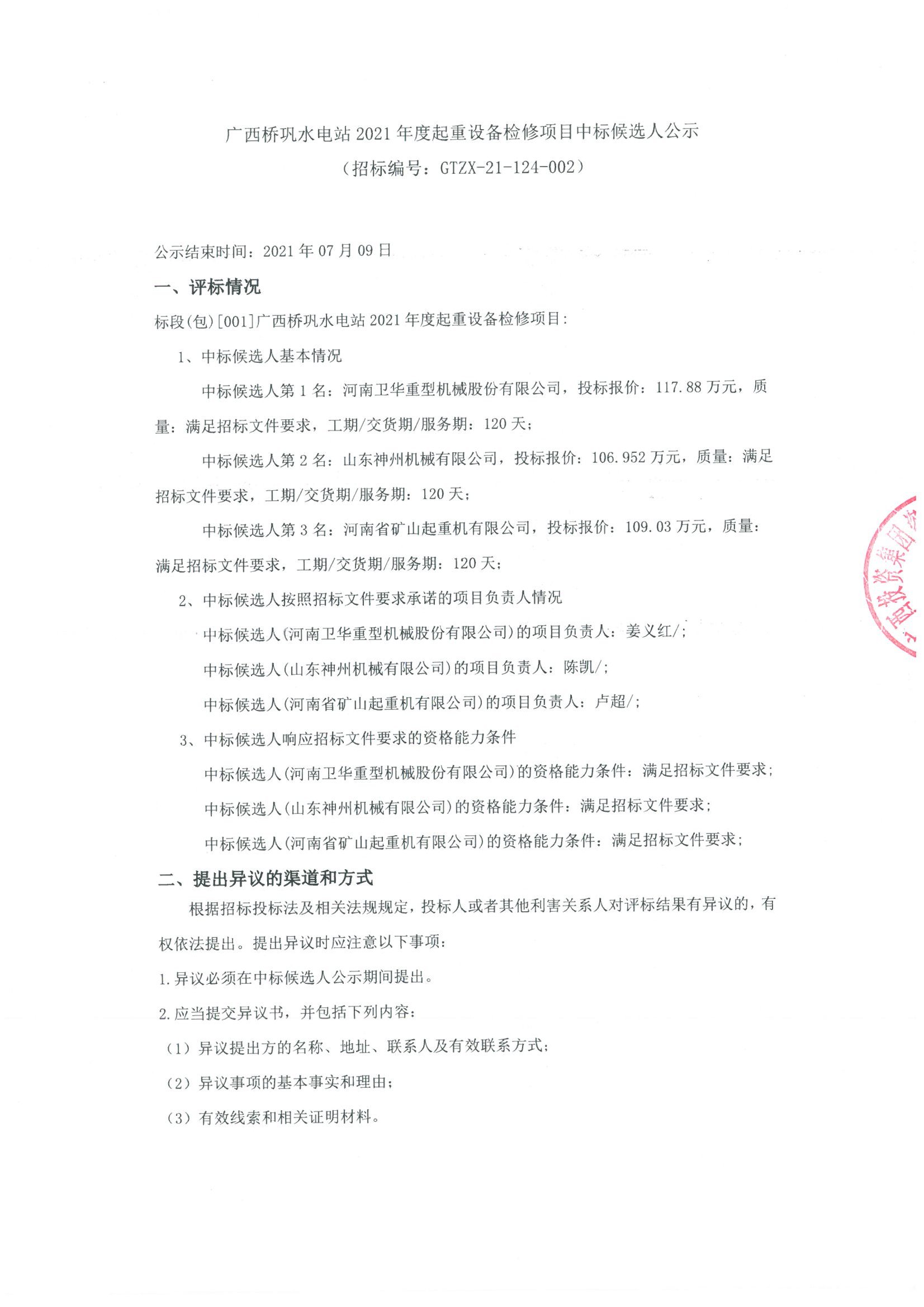 移動版:廣西;起重設備檢修項目中標候選人公示